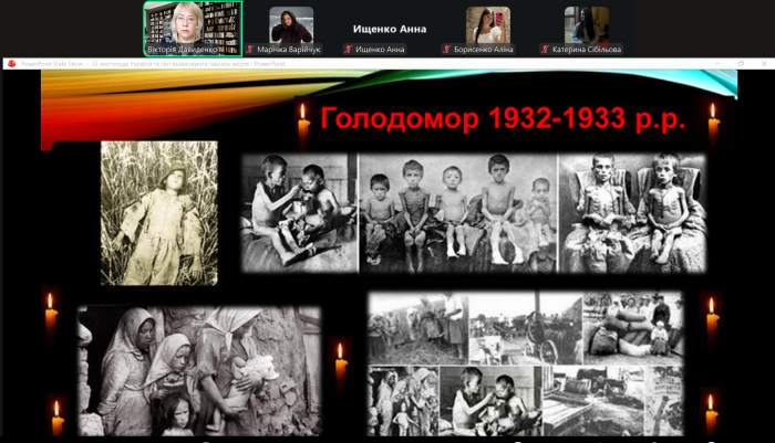 Куратори навчально-наукового інституту №5 провели в закріплених групах тематичні виховні години, присвячені вшануванню пам’яті жертв Голодомору 1932-1933 років, а також жертв масових штучних голодів 1921-1922 та 1946-1947 років. Цей день в Україні проходить щороку в четверту суботу листопада. Під час бесід студенти дізнавались про історичні події, в результаті яких Україна втратила мільйони людських життів. Куратори також закликали молодь приєднатись до загальноукраїнської акції «Запали свічку» як символу вшанування безвинно загиблих жертв тоталітарного режиму.