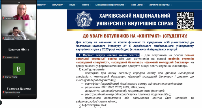 Старшокласники дізналися про особливості навчання у Харківському національному університеті внутрішніх справ, умови вступу до навчально-наукового інституту №5 та спеціальності, за якими готують фахівців.