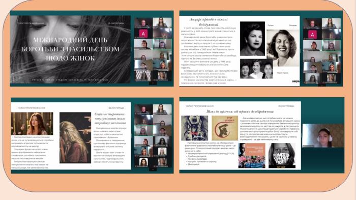 Під керівництвом доцентки кафедри соціології та психології Яни ПОНОМАРЕНКО учасники наукового гуртка обговорили історію міжнародної кампанії «16 днів проти насильства», її ключові цілі та символіку дат, що формують структуру цієї глобальної правозахисної ініціативи.