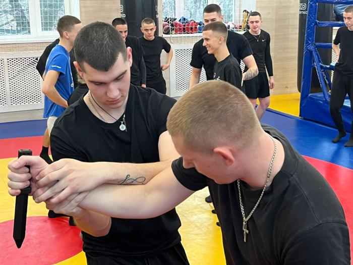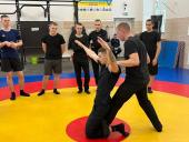 Працівники групи оперативного реагування Кам'янець-Подільського батальйону патрульної поліції Євген ПАЗЮК та Вадим ВОЗИЛА провели тренування для майбутніх слідчих і дізнавачів. Кожен рух під час затримання правопорушника – з холодною чи вогнепальною зброєю – патрульні демонстрували та пояснювали на реальних прикладах.