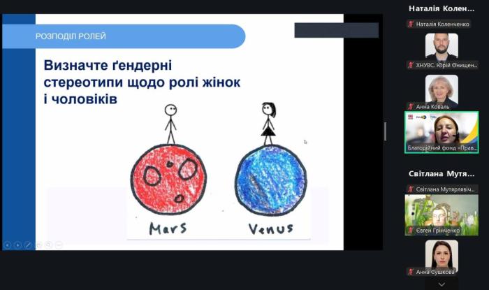 Заняття проводила Олена ДАШУТІНА – психологиня, сексологиня, національна тренерка Національного навчального центру з питань попередження та реагування на домашнє та гендерно зумовлене насильство при UNFPA, тренерка з ГЗН БФ «Право на захист», лекторка з питань сексуального та репродуктивного здоров’я ГО «Дівчата».