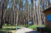 База відпочинку «Янтарна» з усіх боків оточена чудовим сосновим бором, є піщаний пляж для купання, створені прекрасні умови для любителів порибалити.