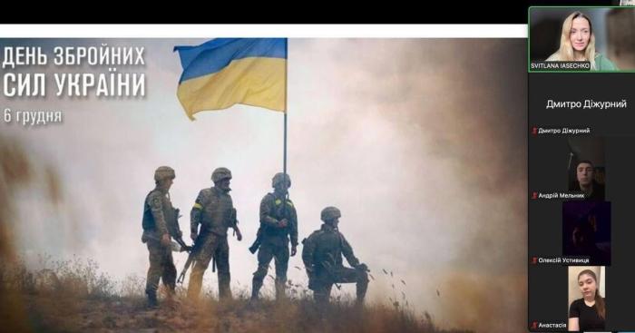 Курсанти ННІ №1 напередодні Дня Збройних Сил України зустрілися онлайн із кураторкою, доценткою кафедри цивільного та трудового права Світланою ЯСЕЧКО. Захід мав на меті вшанувати військовослужбовців, які щоденно стоять на захисті держави, а також поглибити розуміння значення професійної підготовки майбутніх фахівців у правовій сфері.