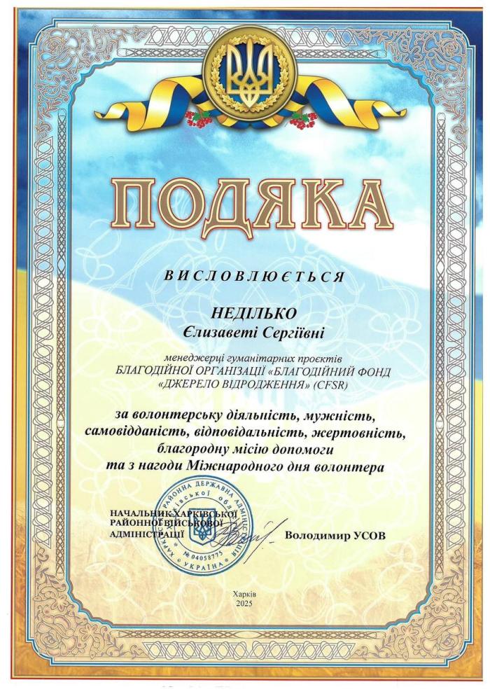 Студентка 3 курсу ННІ №5 Єлизавета НЕДІЛЬКО є менеджеркою гуманітарних проєктів Благодійної організації «Благодійний фонд “Джерело відродження”». Вона бере активну участь у заходах із допомоги військовослужбовцям та особам, які постраждали від ворожої агресії російської федерації.