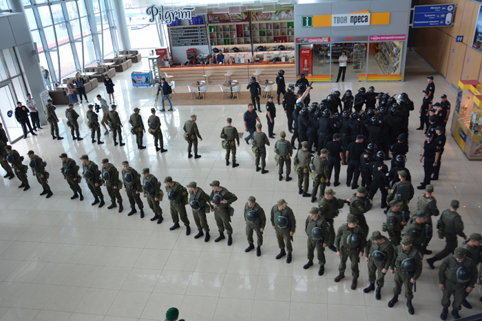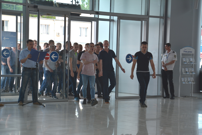 Перший етап навчань розпочався в аеропорту, де правоохоронці відпрацьовували дії прикордонного контролю щодо осіб, які прибували для участі у чемпіонаті, здійснювали контроль режиму в пунктах пропуску, забезпечували безпеку та публічний порядок під час прибуття та від’їзду учасників чемпіонату, супроводжували колони транспортних засобів, які забезпечуватимуть перевезення офіційних делегацій до місця їх проживання у готелях Харкова.