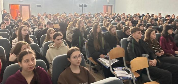 Ліцеїсти дізналися про навчально-наукові інститути та спеціальності, за якими здійснюється підготовка фахівців у ХНУВС. Значну увагу спікери приділили особливостям вступної кампанії-2026, зокрема алгоритму реєстрації анкети на порталі Національної поліції для кандидатів на навчання у закладах вищої освіти МВС України.