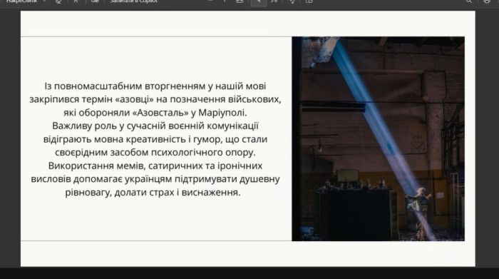 Здобувачка вищої освіти Олена Тарадайко на пленарному засіданні виголосила доповідь «Лексика російсько-української війни», у якій проаналізувала походження номінацій, їхню функцію та роль у формуванні національної ідентичності. Студентка Христина Ломанцева подала до розгляду публікацію «Репресії проти мови: сучасні реалії», де дослідила прояви лінгвоциду на тимчасово окупованих територіях, наслідки цього процесу для сучасного суспільства.