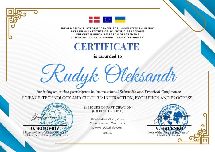 Матеріали учасників включені до офіційного збірника, який отримав міжнародні індекси ISBN та DOI. Участь у таких наукових заходах сприяє інтеграції курсантів у глобальний дослідницький простір та дозволяє апробувати результати їхньої наукової праці на міжнародному рівні. Організатори позитивно оцінили спільну роботу здобувачів освіти із науковим керівником, відзначивши ґрунтовність та актуальність представлених тез. Цей досвід став вагомим кроком на шляху професійного становлення та підвищення кваліфікації майбутніх фахівців.