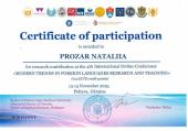 Старша викладачка кафедри мовної підготовки Наталія Прозар взяла участь у IV Міжнародній науково-практичній онлайн-конференції «Modern Trends in Foreign Languages Research and Teaching» («Сучасні тенденції вивчення та навчання іноземних мов»), яку проводив Полтавський державний медичний університет.