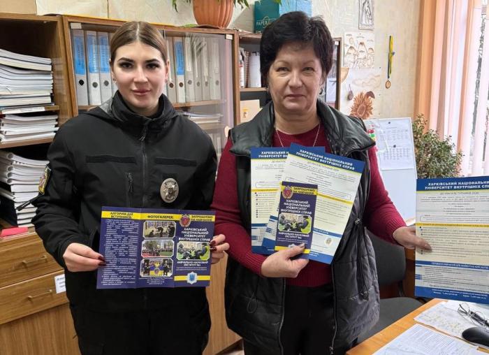 Пд час спілкування вони детально розповіли про переваги навчання в ХНУВС, особливості освітнього процесу та специфічні умови вступу до університету. Для кращого ознайомлення майбутніх абітурієнтів із можливостями навчання у поліцейському виші представникам навчальних закладів було передано профорієнтаційні інформаційні матеріали.