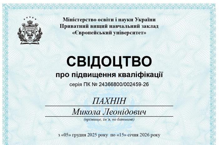 Завідувач кафедри кримінального права та кримінології Микола Пахнін, професори Вячеслав Ємельянов і Вікторія Давиденко, доценти Юрій Вапсва, Владислав Кундеус, Ярослав Лантінов, Юлія Татаркіна та старший викладач Євген Пілявський пройшли підвищення кваліфікації за програмою «Цифрова трансформація вищої освіти» обсягом 180 годин (6 кредитів ECTS).