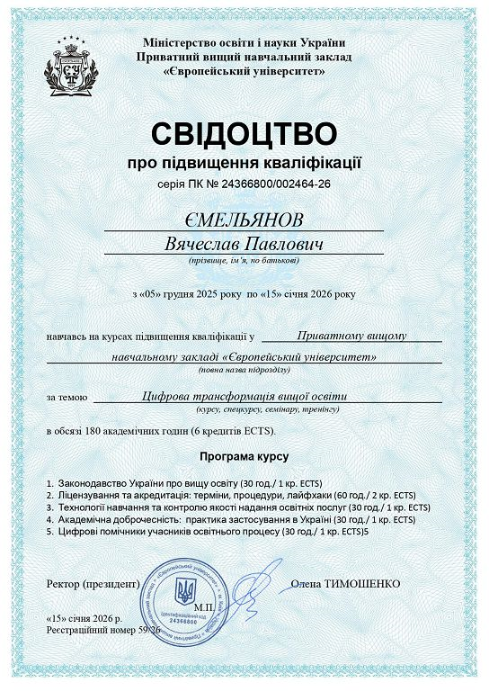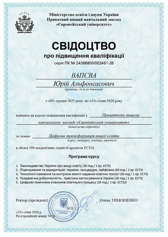 Загалом проходження курсу сприяло поглибленню розуміння процесів цифрової трансформації вищої освіти, удосконаленню професійних компетентностей та набуттю практичних навичок, необхідних для впровадження цифрових рішень у діяльність закладів вищої освіти.