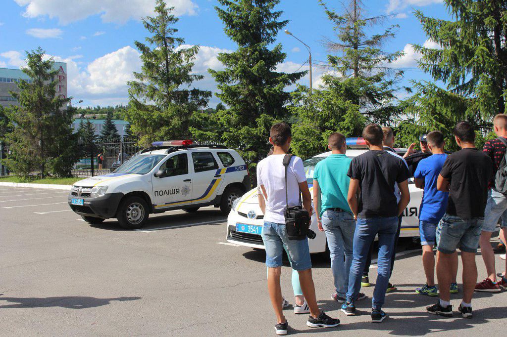 Юнакам і дівчатам продемонстрували службові автомобілі, поліцейський велосипед, роз'яснили мету використання спеціальних світлових та звукових сигналів.