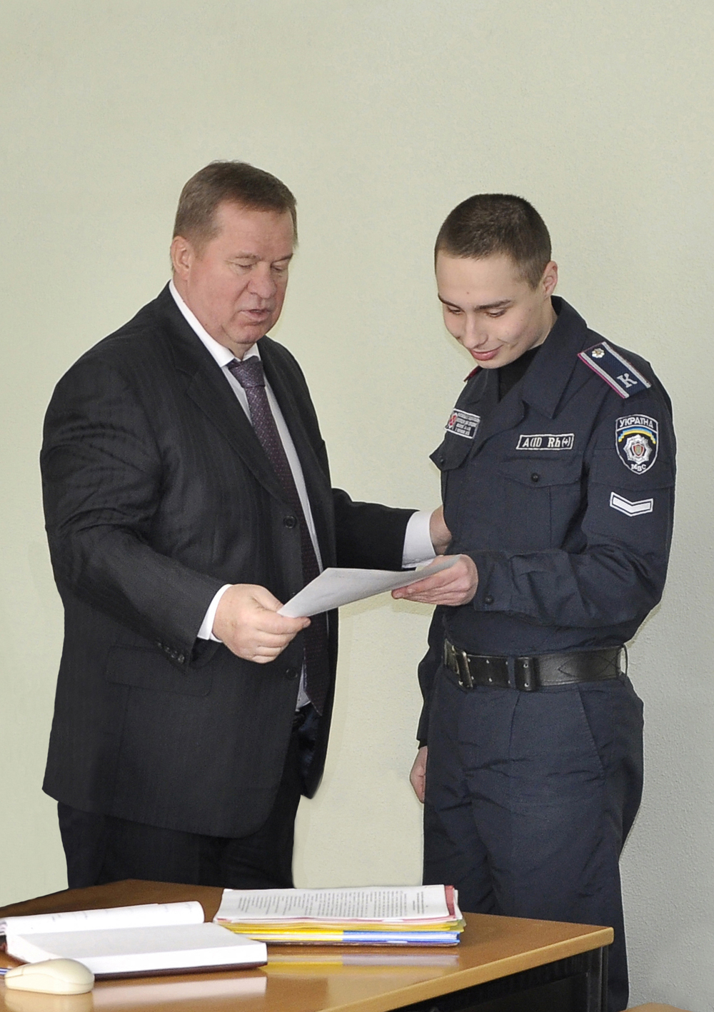 справах дітей Павлу Павлюченку ректор вручив фото на згадку з особистим підписом, на якому рядовий міліції зображений під час несення служби.