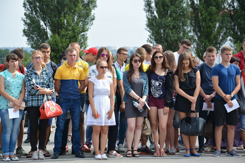Перший проректор університету представив вступникам начальника табірного збору проректора Анатолія Клочка, а також начальників факультетів. Вони запросили першокурсників до розташування своїх підрозділів.