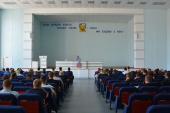 Зустріч провели проректор навчального закладу Анатолій Клочко та заступник начальника УКЗ – начальник відділу інспекції по особовому складу ГУНП в Сумській області підполковник поліції Ігор Поладич.