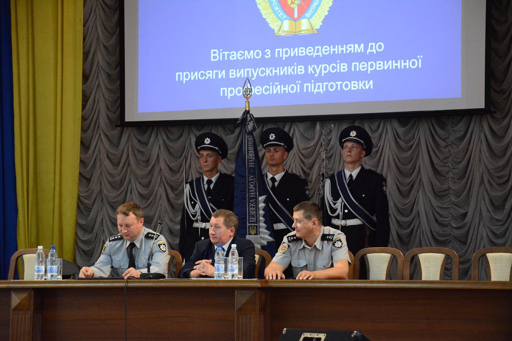 В урочистій церемонії приведення до Присяги працівника поліції випускників курсів первинної професійної підготовки взяли участь проректори Харківського національного університету внутрішніх справ підполковник поліції Михайло Бурдін, Анатолій Клочко, начальник слідчого управління ГУНП в Харківській області полковник поліції Володимир Тимошко.