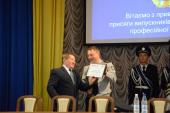 Після прийняття Присяги до випускників звернувся проректор університету Анатолій Клочко. Він передав присутнім поздоровлення від ректора університету генерала поліції третього рангу Валерія Сокуренка і зазначив, що знання, які отримали випускники під час навчання, допоможуть їм сумлінно виконувати свої професійні обв’язки, набувати впевненості й досвіду. Анатолій Миколайович також побажав гідно нести звання випускника Харківського національного університету внутрішніх справ і в роботі керуватися девізом Національної поліції України – «Служити і захищати».