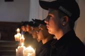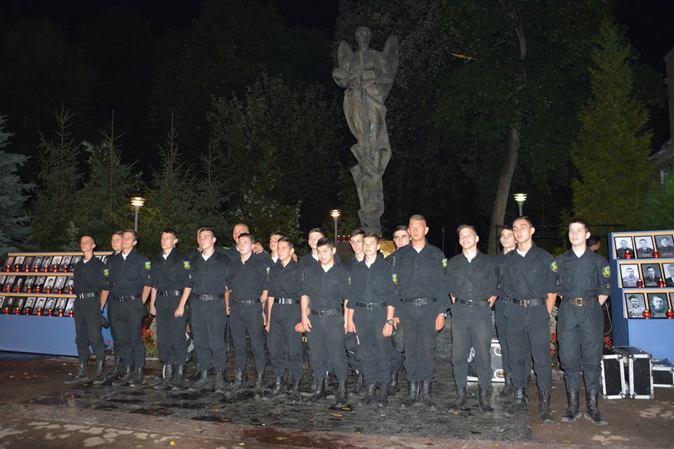 Ректор університету генерал поліції третього рангу Валерій Сокуренко, академік, генерал-полковник міліції Олександр Бандурка, народний депутат України, голова Наглядової ради ХНУВС Ірина Єфремова, працівники вишу, курсанти та студенти разом із усіма присутніми поклали гірлянди Пам’яті та квіти до підніжжя скульптурної композиції, запалили свічки у каплиці Архістратига Михаїла під час поминального молебну за упокій душ загиблих.