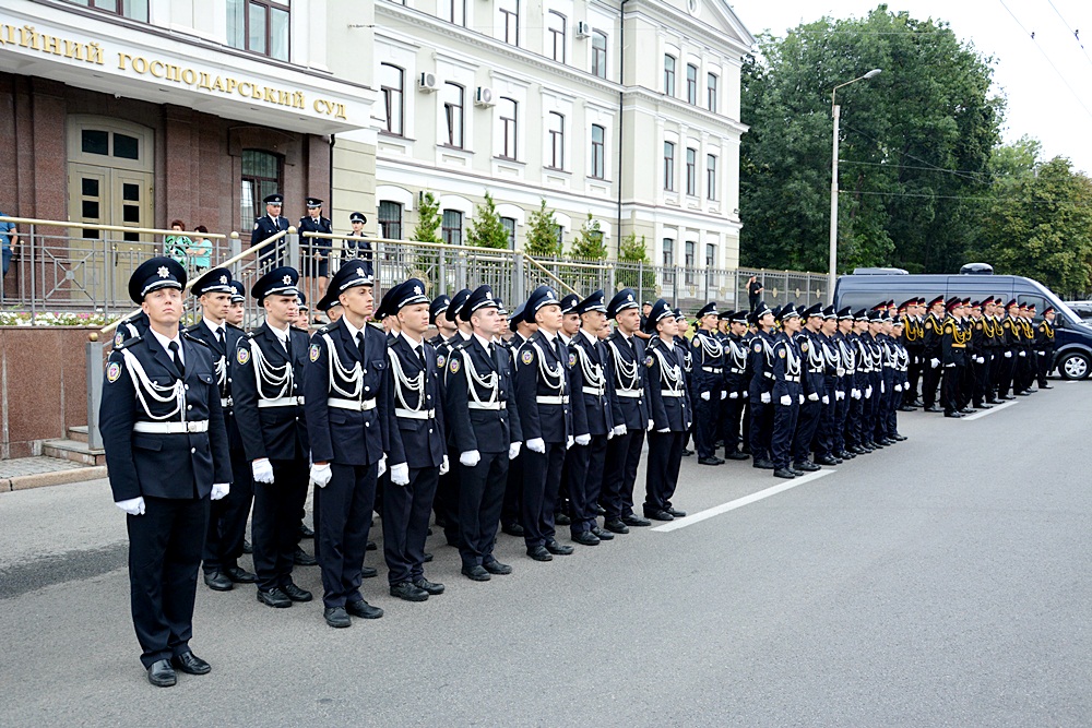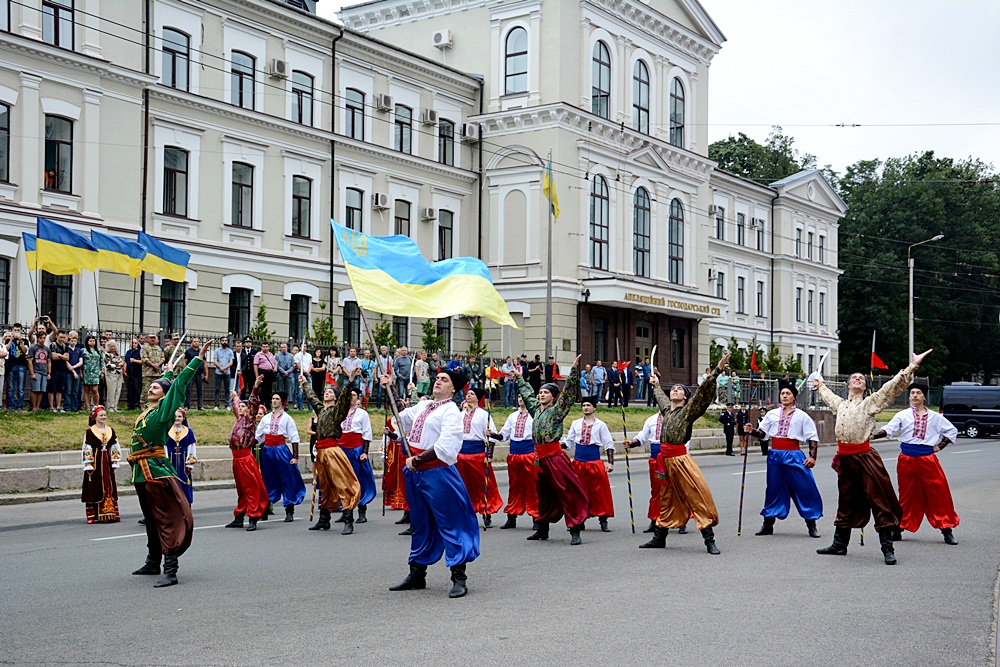 Під час урочистостей біля флагштока в сквері на проспекті Незалежності у складі почесної варти харківського гарнізону урочистим маршем пройшли і підрозділи курсантів Харківського національного університету внутрішніх справ та ансамбль барабанщиць.