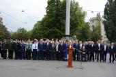 У Харкові відбулися урочистості з нагоди Дня Державного Прапора України. В них взяли участь керівники органів державної влади та місцевого самоврядування, учасники АТО, волонтери, представники громадськості. Серед учасників – і представники Харківського національного університету внутрішніх справ – ректор університету генерал поліції третього рангу Валерій Сокуренко, перший проректор підполковник поліції Дмитро Швець, академік Національної академії правових наук України Олександр Бандурка, декани факультетів та ін.