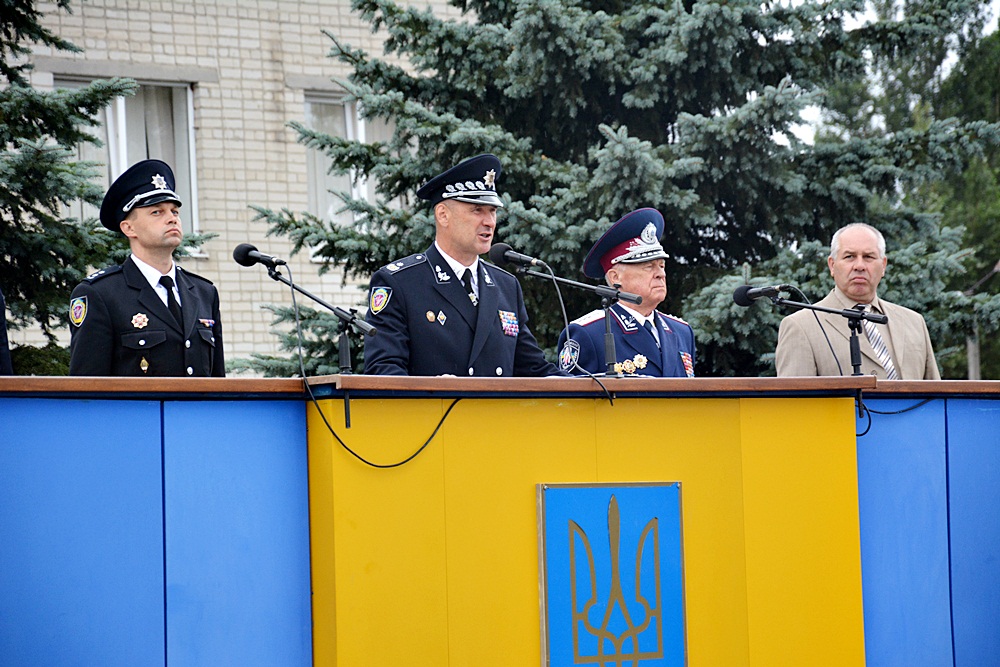Відкрив урочистості ректор університету генерал поліції третього рангу Валерій Сокуренко. Він привітав усіх зі святом і зазначив, що більшість тих, хто сьогодні присутні на заходах, молодші за Незалежність України. Звертаючись до молоді, ректор наголосив, що сьогодні її головним обов’язком є добре навчатися, любити свою державу, бути її справжніми патріотами. «Я вдячний, що ви обрали саме наш університет, – сказав Валерій Васильович, – вдячний вашим батькам, що вони виховали вас мужніми і стійкими, такими, якими повинні бути працівники поліції, адже від їхнього сумління, підготовки, упевненості залежить безпека громадян, ступінь довіри до Національної поліції України та держави в цілому. Я пишаюся тим, що працюю в університеті, особовий склад якого у квітні 2014 року відстояв Харків, щоб у ньому майорів жовто-синій прапор. І поки такі люди є поруч із нами, ми – непереможні!».