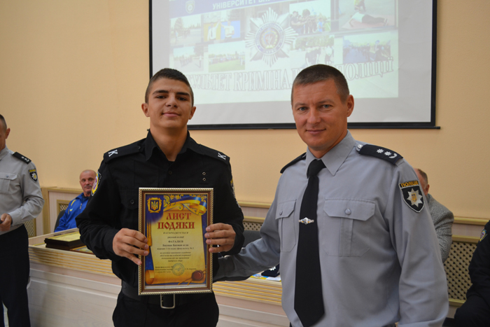 Під час зустрічі відбулося урочисте нагородження найкращих курсантів 1, 2 та 4 курсів. Від імені керівництва та за рішенням Вченої ради факультету № 2 за високі результати у спортивних змаганнях з командних видів спорту подяками було заохочено рядових поліції Фаталієва Б.Б. (футбол), Скрипника І.Д. (волейбол) та Галаху Ю.О. (баскетбол).