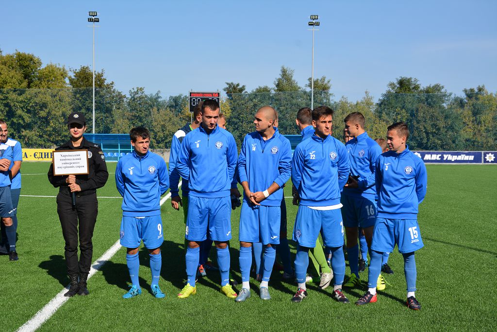 Команди, які вишикувалися на полі перед початком гри, привітав ректор Харківського національного університету внутрішніх справ генерал поліції третього рангу Валерій Сокуренко. Як зазначив Валерій Васильович, нинішні змагання – це майже олімпійські ігри, під час яких учасники зможуть продемонструвати свої найкращі спортивні якості – наполегливість, витривалість, волю до перемоги. Він подякував Міністру внутрішніх справ Арсену Авакову за підтримку у розбудові спортивної інфраструктури, що сприяє належній фізичній та професійній підготовці майбутніх працівників поліції.
