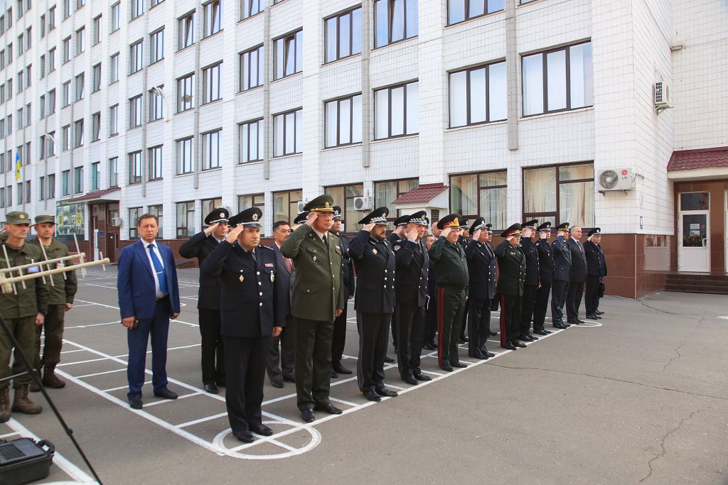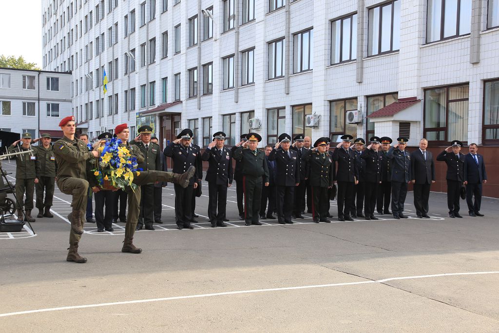 Розпочався захід із вшанування пам’яті вихованців Академії, які загинули в роки Другої Світової війни, під час виконання службово-бойових завдань, завдань з охорони громадського порядку, в зоні проведення антитерористичної операції. Було покладено квіти до стели героїв навчального закладу.