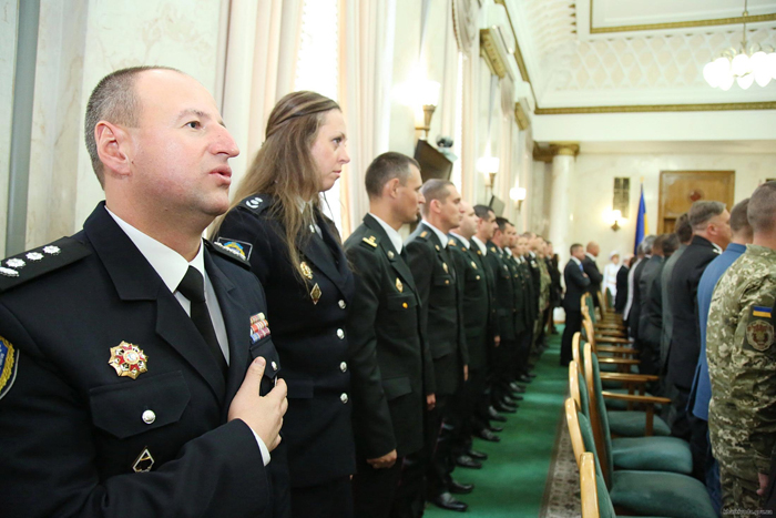 Голова Харківської обласної державної адміністрації Юлія Світлична напередодні Дня захисника України поздоровила військовослужбовців зі святом. В числі запрошених на урочистості були й представники Харківського національного університету внутрішніх справ на чолі з ректором генералом поліції третього рангу Валерієм Сокуренком.