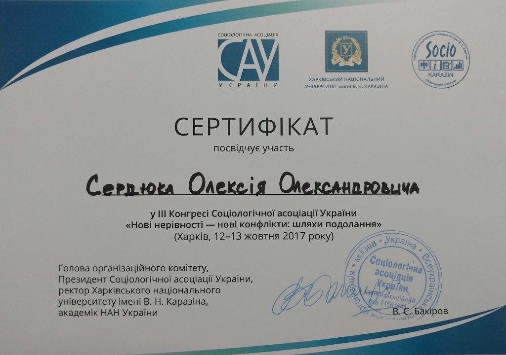Заступник завідувача науково-дослідної лабораторії з проблем протидії злочинності Харківського національного університету внутрішніх справ підполковник поліції Олексій Сердюк взяв участь у роботі IІІ Конгресу Соціологічної асоціації України «Нові нерівності — нові конфлікти: шляхи подолання», який проходив у Харківському національному університеті ім. В.Н. Каразіна.
