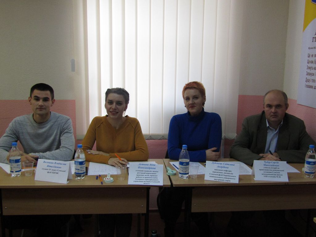 Учасників змагань перед початком турніру привітав директор Сумської філії ХНУВС Сергій Лукаш. Він побажав школярам цікавої гри та яскравих перемог. З вітальними словами до присутніх також звернулися заступник директора – начальник відділу навчально-методичної роботи Катерина Науменко, завідувач кафедри юридичних дисциплін Оксана Панасюк та методист Інформаційно-методичного центру управління освіти і науки Сумської міської ради Вікторія Тодосійчук.