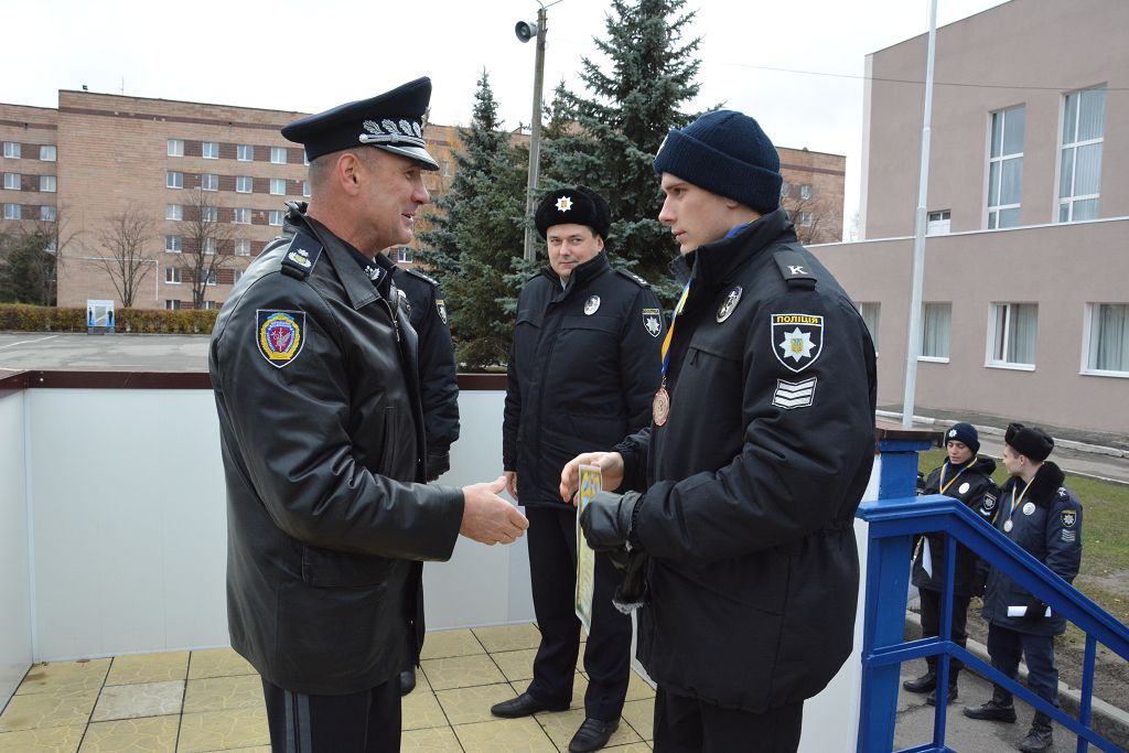 На ранковому шикуванні ректор Харківського національного університету внутрішніх справ генерал поліції третього рангу Валерій Сокуренко відзначив спортсменів вишу, які посіли призові місця у змаганнях із таких видів спорту, як панкратіон та теніс.