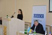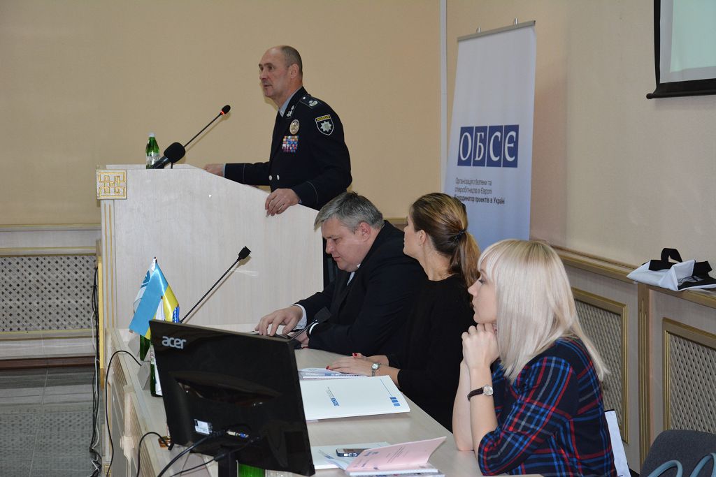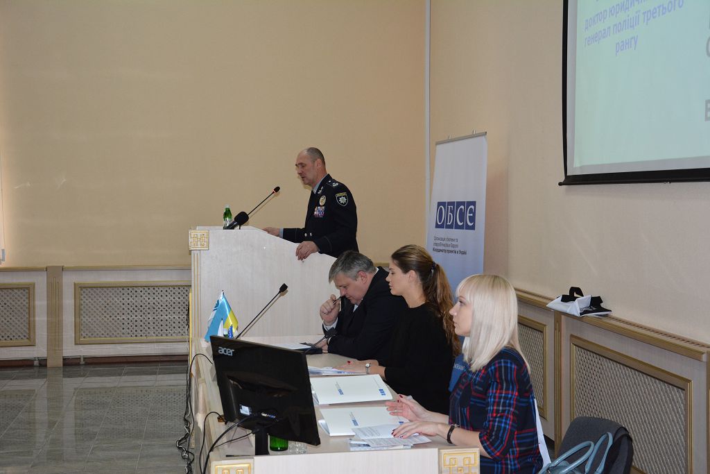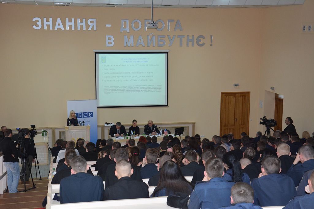 З вітальним словом до присутніх звернулася Надія Кондибіна, яка передала привітання від Координатора проектів ОБСЄ в Україні та розповіла про результати діяльності щодо превентивних дій, співпраці та організації надання практичної допомоги постраждалим від насильства, торгівлі людьми. Питанням реалізації державної політики в сфері протидії торгівлі людьми в Україні та застосування інформаційних технологій в розслідуванні присвятив свій виступ Артем Крищенко. Представник Міністерства соціальної політики України Олена Фаримець проаналізувала причини, що стали підґрунтям для скоєння злочинів проти людини та зупинилася на заходах соціального захисту постраждалих від торгівлі людьми.