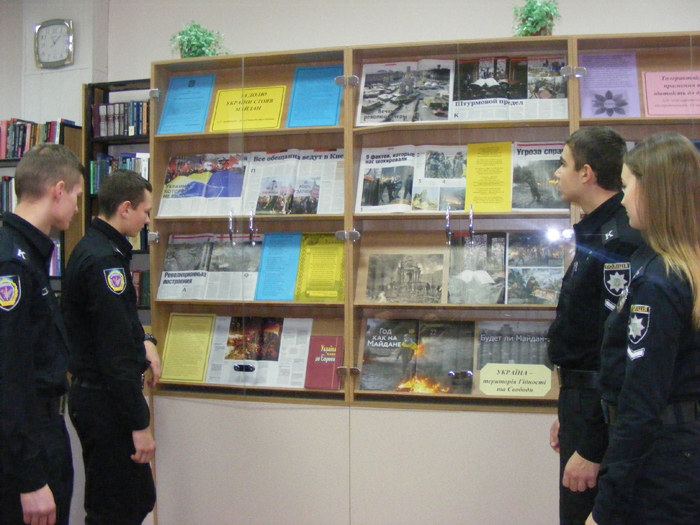 До Дня Гідності та Свободи бібліотека Харківського національного університету внутрішніх справ презентує розгорнуту книжково-ілюстративну експозицію «За долю України стояв Майдан». На сторінках друкованих видань та у фотодокументах висвітлюються стрімкі й драматичні події листопада 2013 – лютого 2014 років.