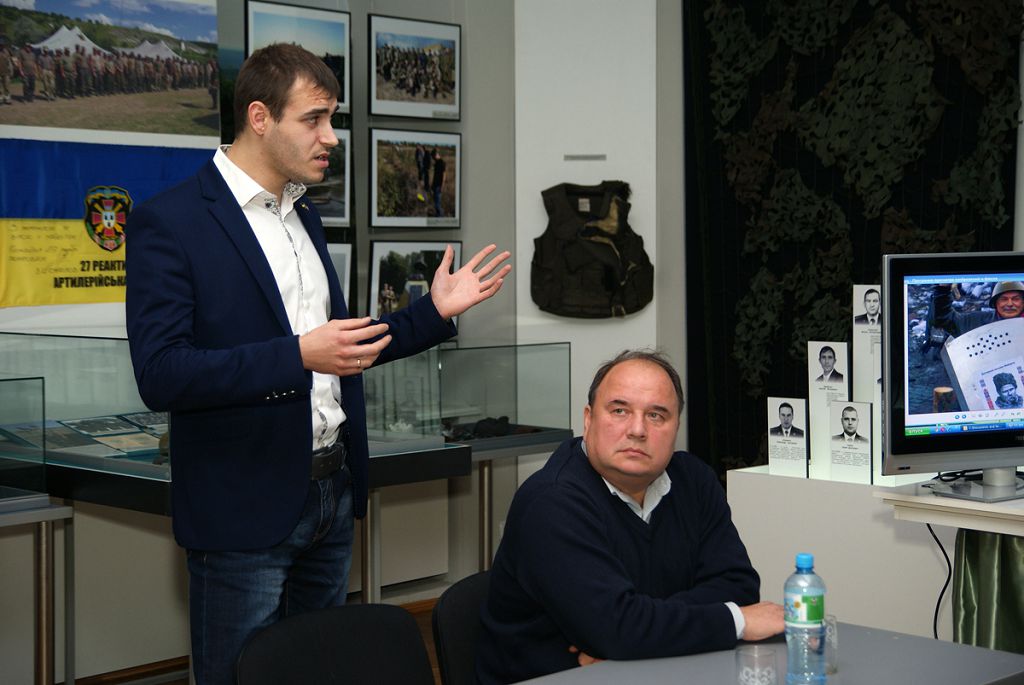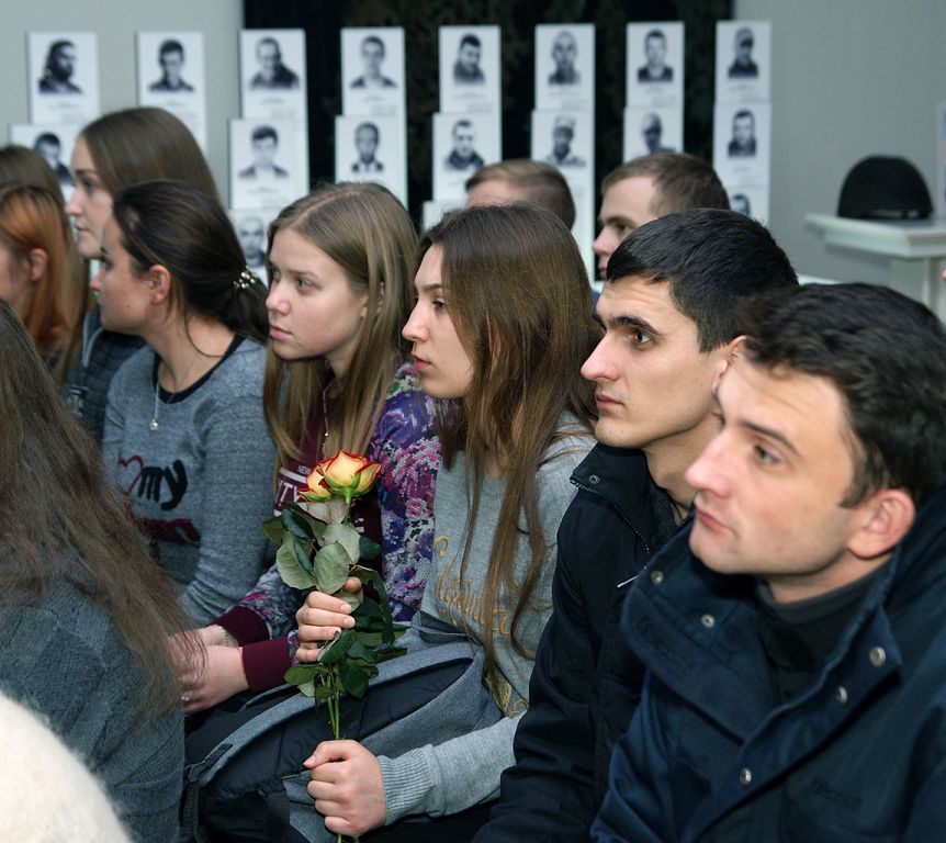 Напередодні Дня Гідності та Свободи у Сумському обласному краєзнавчому музеї відбулася зустріч молоді з учасниками доленосних подій листопада 2013 – лютого 2014 рр. У музейній залі, де розгорнуто експозицію «Революція Гідності та АТО: сумський вимір», зібрались військовослужбовці Національної гвардії України (в/ч 3051), студенти Сумської філії Харківського національного університету внутрішніх справ та слухачі Сумського центру первинної професійної підготовки «Академія поліції». Спікерами заходу стали учасники Євромайдану громадські активісти Іван Бортник і Родіон Дученко.