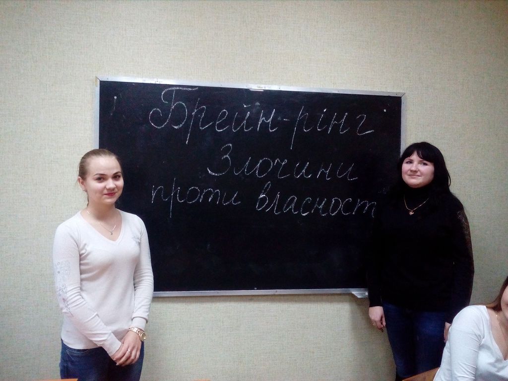 Старшим викладачем кафедри юридичних дисциплін Сумської філії Мариною Колесник було проведено практичне заняття з дисципліни «Кримінальне право» за темою «Злочини проти власності» у форматі брейн-рингу зі студентами 2-го курсу денної форми навчання.