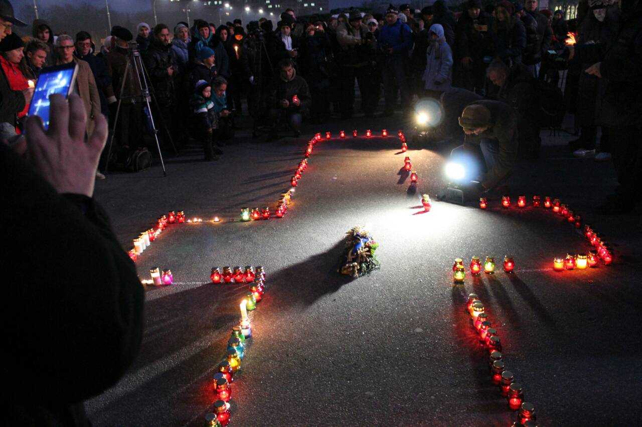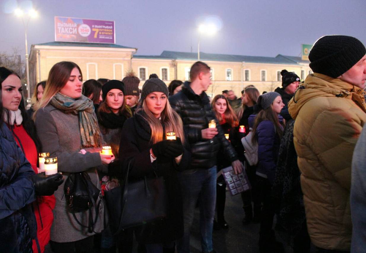 Акція проходила на майдані Свободи, де всі присутні вшанували пам'ять жертв Голодомору хвилиною мовчання. Вони виклали зі свічок великий хрест та поклали у його центрі колоски.