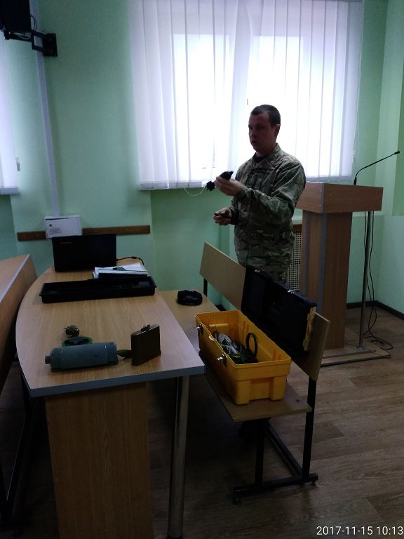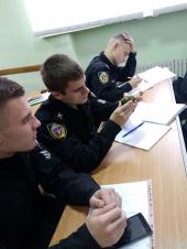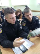 Старші викладачі кафедри іноземних мов факультету № 1 Харківського національного університету внутрішніх справ Лариса Сазанова та Анатолій Коршенко разом з інспектором-вибухотехніком вибухотехнічного управління ГУНП у Харкові капітаном поліції Максимом Левицьким провели бінарне заняття для курсантів 3 курсу факультету № 1 за темою: «Міжнародне співробітництво у боротьбі зі злочинністю».
