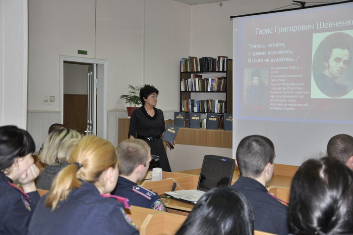 Бібліотека Харківського національного університету внутрішніх справ спільно із Харківською обласною науковою бібліотекою презентувала університетській молоді біографічний відеолекторій «Тарас Шевченко – великий син великого народу».