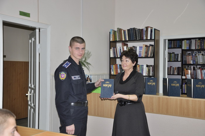 У дарунок від бібліотеки курсанти та студенти отримали томи «Кобзаря», а також сфотографувались біля книжково-ілюстративної експозиції «Тарас Шевченко – вічний, як народ».
