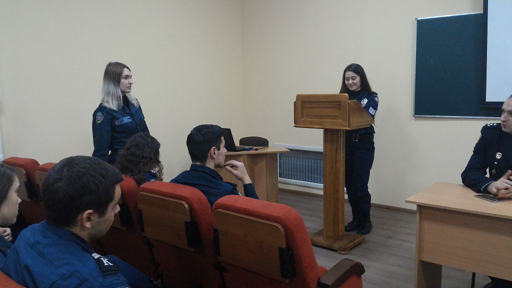 Керівник гуртка підполковник поліції Валентина Гончарук надала курсантам настанови щодо правильного застосування чинного законодавства у своїй майбутній професійній діяльності, закликала курсантів працювати над підвищенням свого освітньо-кваліфікаційного рівня та надала слово курсантам-доповідачам. Особливу зацікавленість та палку дискусію викликали доповіді курсантів Ф4-401 рядового поліції Людмили Дранко та капрала поліції Яни Фещенко щодо особливостей службового часу в поліції та вікового цензу майбутніх поліцейських.