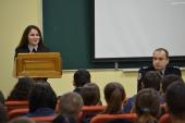 До участі в засіданні гуртка кафедри був запрошений психолог сектору кадрового забезпечення Основ’янського ВП ГУНП в Харківській області, лейтенант поліції Наталя Шишкан, яка поділилася враженнями від практичної роботи, адже вона є випускницею 2017 року факультету № 3. Наталя побажала курсантам наполегливості в навчанні й подальших творчих здобутків у навчанні та практичній діяльності.