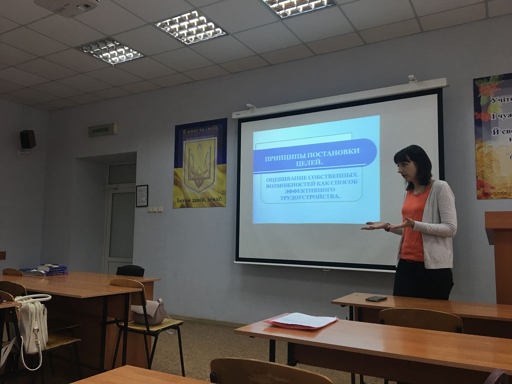 Лектори ознайомили студентів з технікою пошуку роботи, складанням професійного резюме, самопрезентацією та підготовкою до співбесіди з роботодавцем. Особливу увагу було зосереджено на консультаційних послугах, які можуть отримати студенти, звернувшись до центру зайнятості.