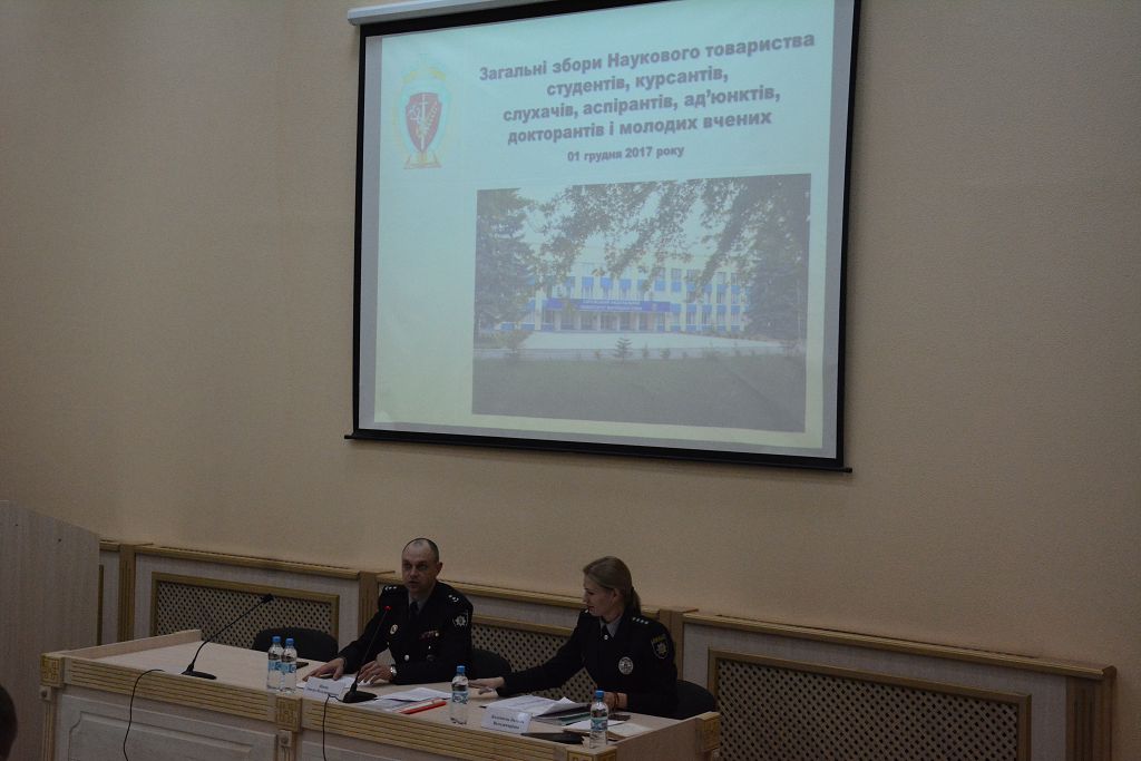 У Харківському національному університеті відбулися загальні збори Наукового товариства студентів, курсантів, слухачів, аспірантів, ад’юнктів, докторантів і молодих вчених. Під час зустрічі підбили підсумки роботи та заслухали звіт про діяльність Наукового товариства за 2017 рік голови Наукового товариства, кандидата юридичних наук Наталії Коломоєць. Як зазначив перший проректор університету підполковник поліції Дмитро Швець, сьогодні надзвичайно важливо, щоб молодь була активним учасником процесів реформування, які відбуваються в нашій державі.