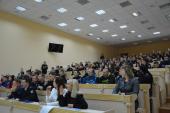 На порядок денний було винесено питання щодо обрання нового голови Наукового товариства. За результатами голосування підтримку отримала викладач кафедри криміналістики та судової експертології, кандидат юридичних наук Юлія Заболотна. Дмитро Швець подякував колишній голові Наукового товариства Наталії Коломоєць за хорошу роботу й побажав нових успіхів та плідної діяльності на новій посаді Юлії Заболотній.