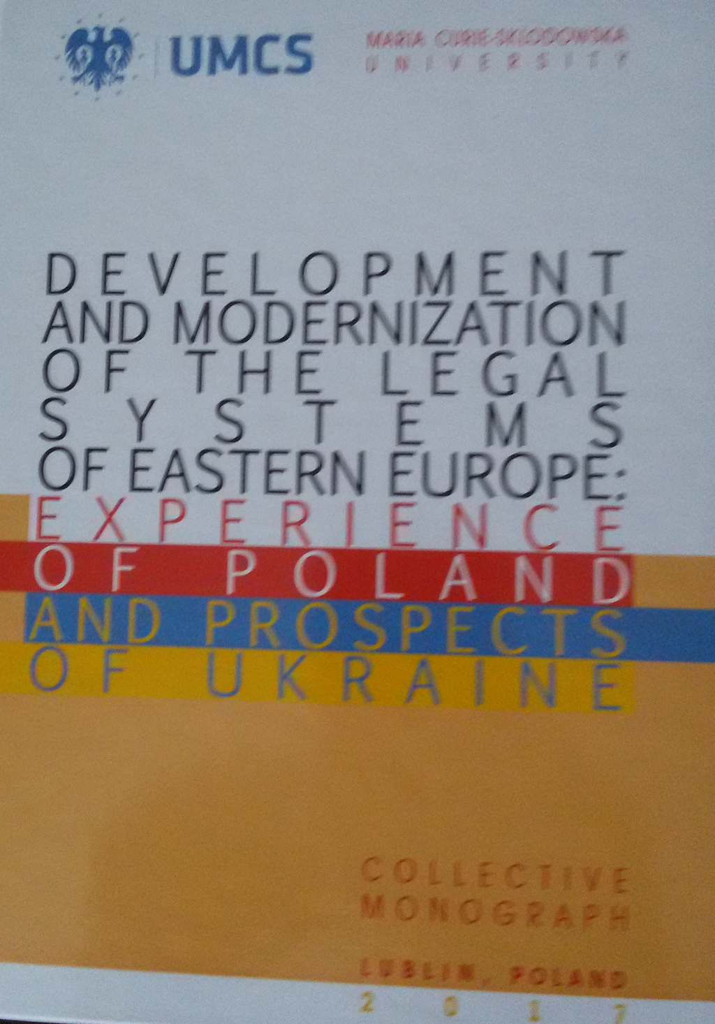 В Університеті Марії Кюрі-Склодовської (Польща, Люблін) вийшла друком колективна монографія «Розвиток та модернізація правових систем країн Східної Європи: досвід Польщі та перспективи України» («Development and modernization of the legal systems of Eastern Europe: experience of Poland and prospects of Ukraine: Collective monograph»). Серед її авторів – доктор юридичних наук, професор, професор кафедри загальноправових дисциплін факультету № 6 Харківського національного університету внутрішніх справ Олена Синявська.