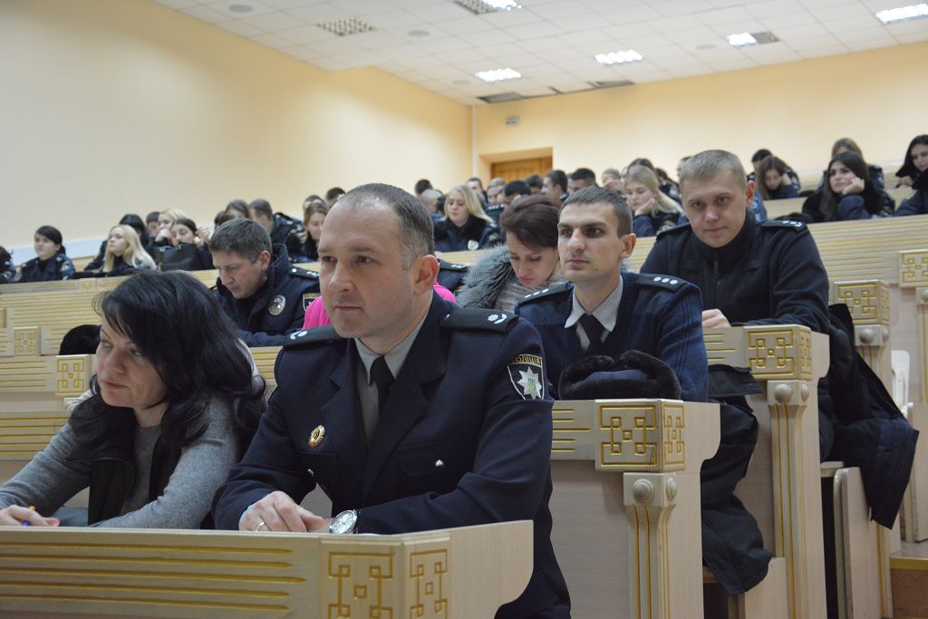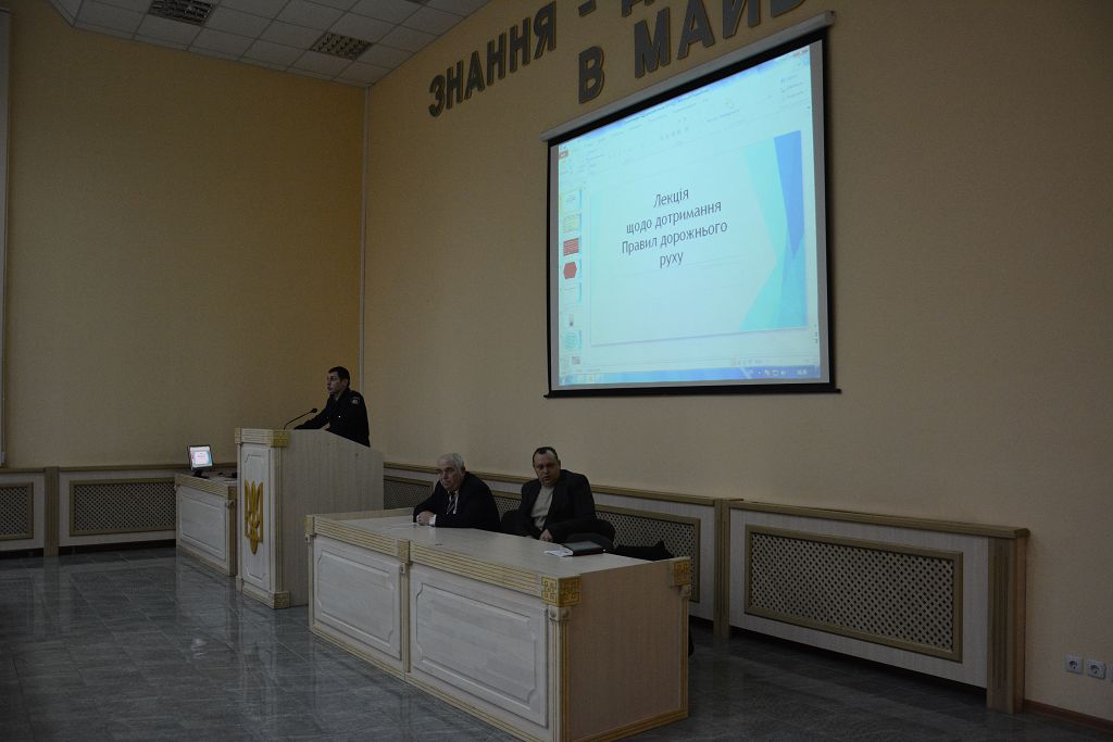 Доцент кафедри тактичної та тактико-спеціальної підготовки факультету № 3 майор поліції Микола Котелюх нагадав присутнім Положення Правил дорожнього руху, що стосуються прав і обов’язків водіїв механічних транспортних засобів, існуючих заборон та порядку дій у випадку причетності до ДТП.