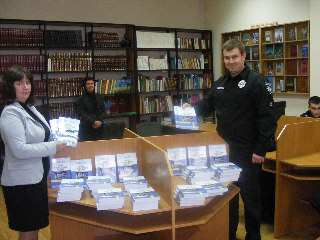За давньою традицією напередодні Нового року бібліотека Харківського національного університету внутрішніх справ отримує подарунки – книги, інші видання у друкованому або електронному форматі. Нещодавно бібліотеці від кафедри тактичної та тактико-спеціальної підготовки – завідувач майор поліції Олексій Прокопенко – було презентовано навчальний посібник «Тактична та тактико-спеціальна підготовка працівників Національної поліції України» за авторством викладачів кафедри. Посібник стане в нагоді курсантам та слухачам курсів початкової підготовки, підвищення кваліфікації МВС України. У виданні розкрито основні аспекти підготовки працівників Національної поліції до несення служби з охорони публічного порядку та безпеки.