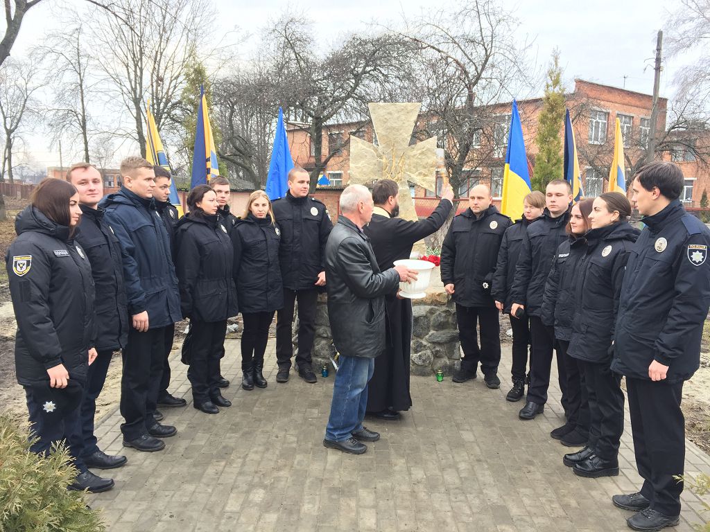 Слухачі Сумського центру первинної професійної підготовки «Академія поліції» ХНУВС взяли участь у церемонії урочистого відкриття меморіального пам’ятного Хреста на честь героїв АТО та всіх тих, хто боровся за волю України.